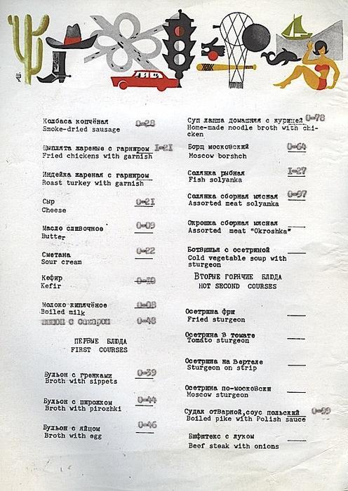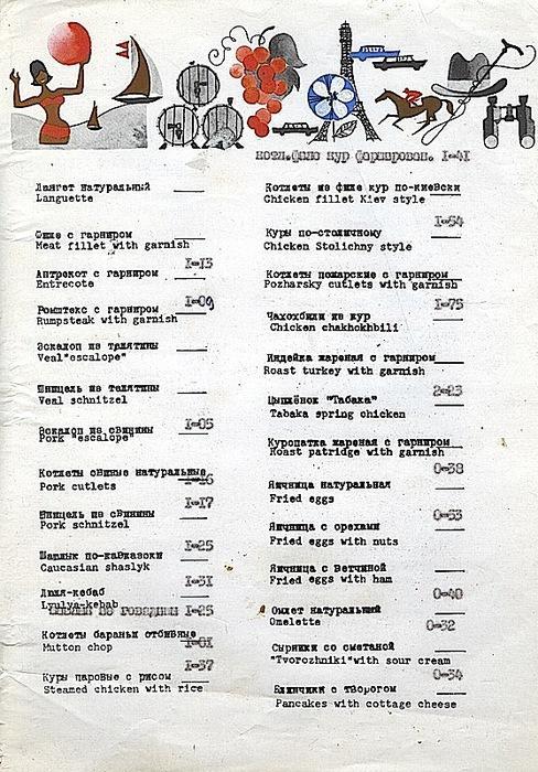 Ностальгия: меню ресторана и кафе в советское время.