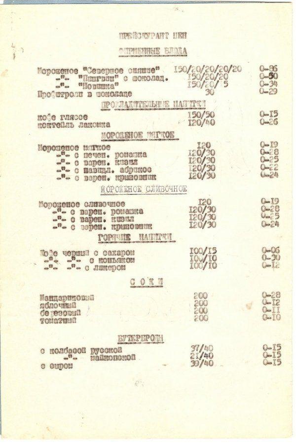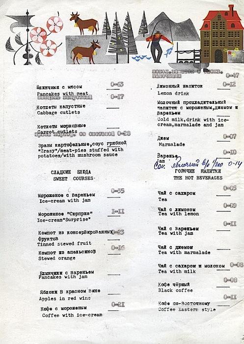 » Ностальгия: меню ресторана и кафе в советское время.
